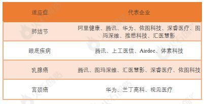 在中国 AI 医疗发展中,AI 医学影像是最热门的应用领域,是其主要的应用场景是医疗健康和大健康中,两种场景下增速较高, 未来五年 AI 医学影像整体市场规模预计复合增速达 102.4% 。 AI 医学影像应用多以单一疾病入手,以单纯图像训练为主,从落地应用来看,以肿瘤和慢病领域为主,其中肺结节和眼底筛查是目前企业布局最多的两个疾病领域,乳腺癌也是热门领域之一。