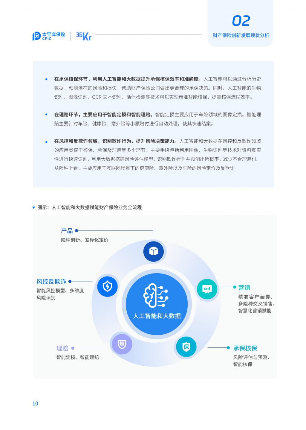 1. 技术创新:人工智能和大数据、物联网、云计算、 区块链 、安全技术等在财产保险领域加速创新应用