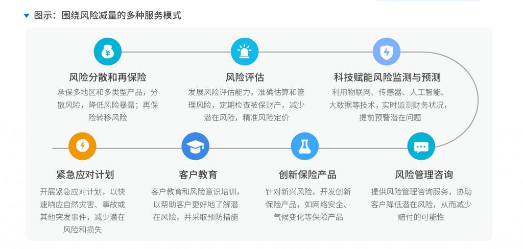 结合自身业务特点,开拓 " 保险 +" 发展模式,拓宽业务范围,提供更多增值服务,增加收入来源。同时,向风险减量服务模式转型,提供有特色、多样化的风险减量服务。