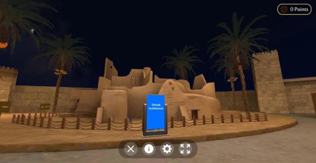 在简单的设置登录后,一个类似古遗迹甬道的场景出现在眼前,在道路的两侧众多关于沙特发展的场景依次展开,展示着沙特自 1727 年以来的悠久历史。