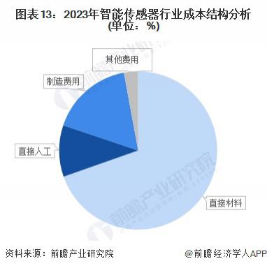 通过对智能传感器行业主要上市企业披露的成本结构进行分析,直接材料、直接人工、制造费用是智能传感器行业成本的主要组成部分。其中,制造与封装等直接材料成本占据了 69.62%; 直接人工成本在 10.55% 左右。