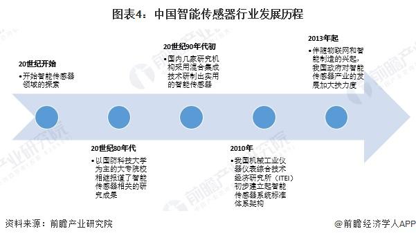 20 世纪开始,我国开始智能传感器领域的探索。2013 年起,智能传感器行业扶持政策陆续出台,例如国家四部委于 2013 年发布《加快推进传感器及智能仪器仪表产业发展行动计划》,重点为使传感器及智能仪器仪表实现微型化、数字化、模块化、网络化 ;2016 年 8 月,国务院发布《" 十三五 " 国家科技创新规划》,提出了发展工业传感器,进行工业传感器核心器件、传感器集成应用等方面的技术攻关,提高工业传感器产业的技术创新能力 ;2017 年,工信部制定了《智能传感器产业三年行动计划 ( 2017-2019 年 ) 》,明确传感器产业的发展目标和方向。伴随物联网和智能制造的兴起,智能传感器得到了广泛关注。