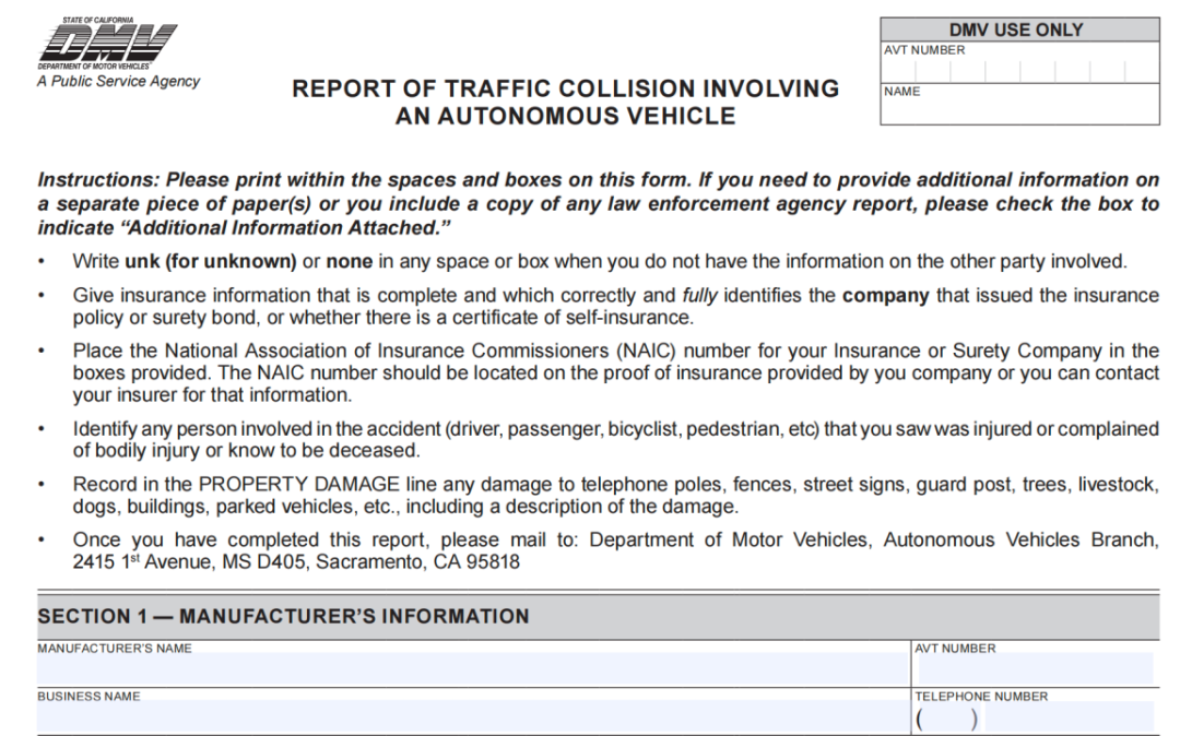 这类事件中,一个容易被忽视的地方在于,上述的碰撞数据均由厂商将涉及自动驾驶汽车的交通事故报告 (OL 316) 提交给DMV,在涉及事故细节一栏上也由厂商填写。因此,存在一定的“修饰”也是可能的。
