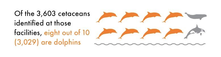 去年年底,世界动物保护协会发布了《“微笑”的背后——全球海豚娱乐业研究》,发现全球大约有超过3600只鲸豚类动物,被圈养在58个国家和地区的355家海洋馆里,其中有3000多只海豚,60%以上分布在北美洲和亚洲。