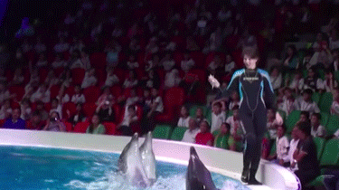 第一次观看海豚表演的经历总是令人难忘——海豚一会用背鳍拉着驯养员穿越水池,一会用吻部将驯养员顶出水面,一会又变成了驯养员脚下的冲浪板……