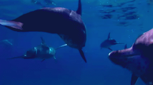 宽吻海豚通常生活在全球温带和热带水域中,长度一般在2米以上。一个海豚群往往由几十上百只海豚组成,为了觅食,它们每天要游上60公里。